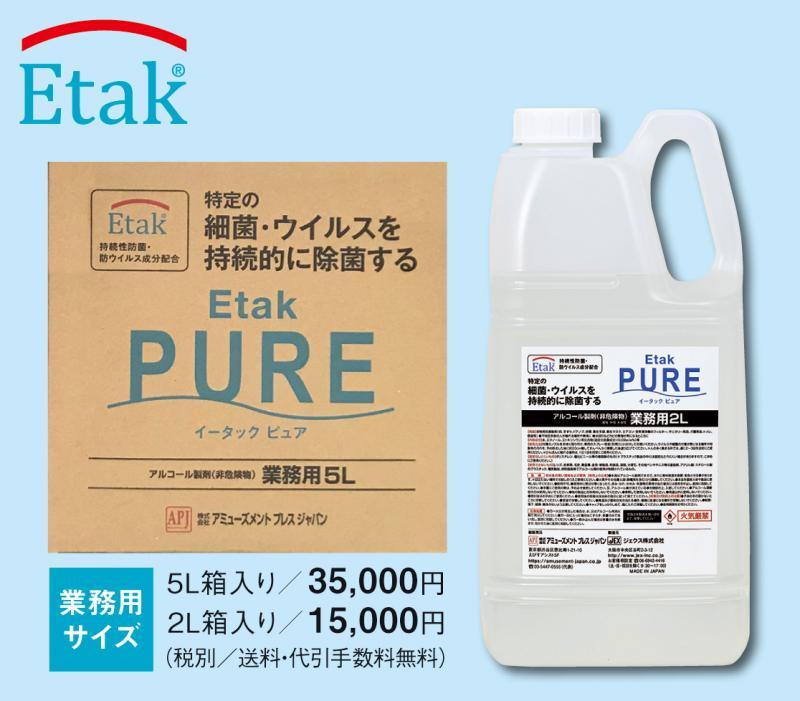 イータックピュアは、インフルエンザウイルスなど身近な細菌・ウイルスに効果があり、様々な感染症や食中毒の予防に効果的。もともと、口腔生物工学の権威である広島大学の二川浩樹教授と薬品メーカーのジェクスが開発した防菌製剤。“歯を抗菌加工して、菌の付着を防げないか”という着想から、歯科で口腔内の治療や洗浄に使用されている除菌成分を固定化する研究を行い開発された。
