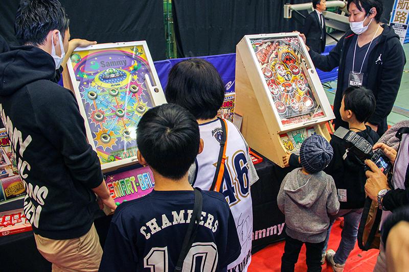 会場の一角ではサミーがブースを出展した。オリジナルキャラクターでデザインしたスマートボールを3台設置。ビンゴ達成者にキリン柄タオル、参加者に横浜ビー・コルセアーズのマスコットキャラクターである「コルス」とエイリやんがコラボしたキットカットをプレゼントした。