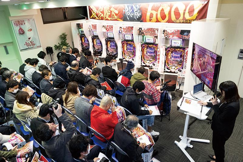 CC企画室の渡邉利幸室長は、「あの雨宮慶太監督が手掛けた映画をモチーフにしたパチンコ。初当たりの2分の1以上で1000個×6=6000個獲得できるセットタイプ。徹底的に6にこだわった仕様になっている」と特徴を紹介した。
