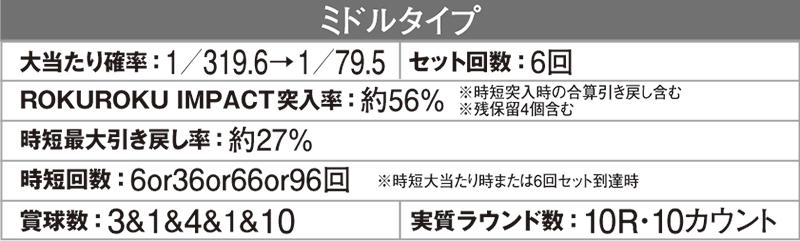 ミドルスペックのセットタイプで、6000個の払い出しがある「ROKUROKU IMPACT」を搭載した。