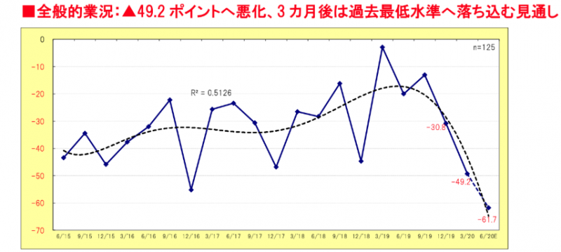 新型コロナの影響鮮明、全般的業況大幅に悪化