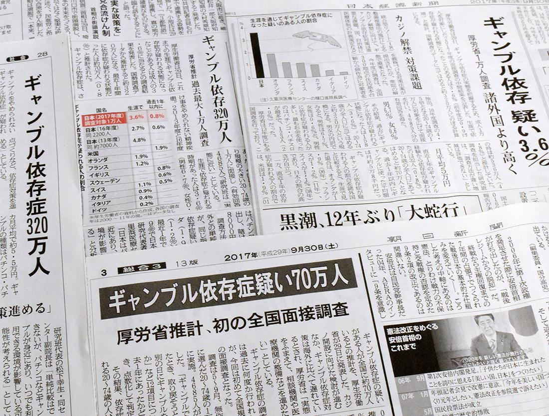 社安研のパチンコ・パチスロ遊技障害研究所は、精神医学、脳科学、心理学、社会学を専門とする7人の領域横断的な研究者から構成され、2017年1月から2月にかけて、全国の18歳から79歳までの9,000人の男女を対象に調査を行い、パチンコ・パチスロ遊技障害のおそれのある人々が推計40万人であるということを明らかにした。