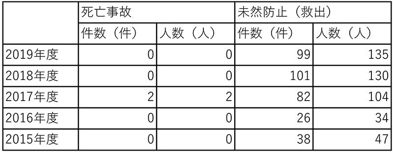 前年と比べると発生件数は2件減。救出人数は5人増えた。