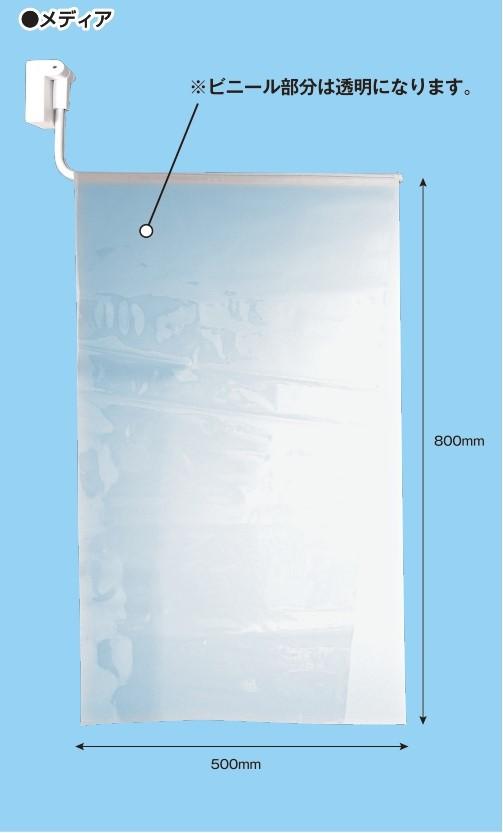 サイズはマグネットベースプレートがH69×W37×D34mm、ポールがW505mmで耐荷重は約500g。メディアはH800×W500mmと広めになっており、台間からの飛沫を防ぐ。
