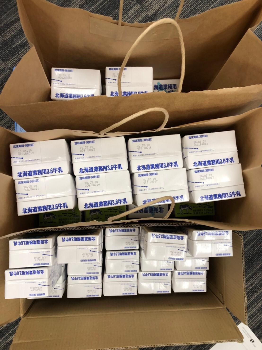 同社では「カフェの休業により発生した食品ロスについては、廃棄する道しかないと思われたが、以前からの支援先であった『まめっこ』と話をすることで今回の寄贈につなげることができた」と話す。牛乳は系列店の社員やアルバイトにも配布したという。