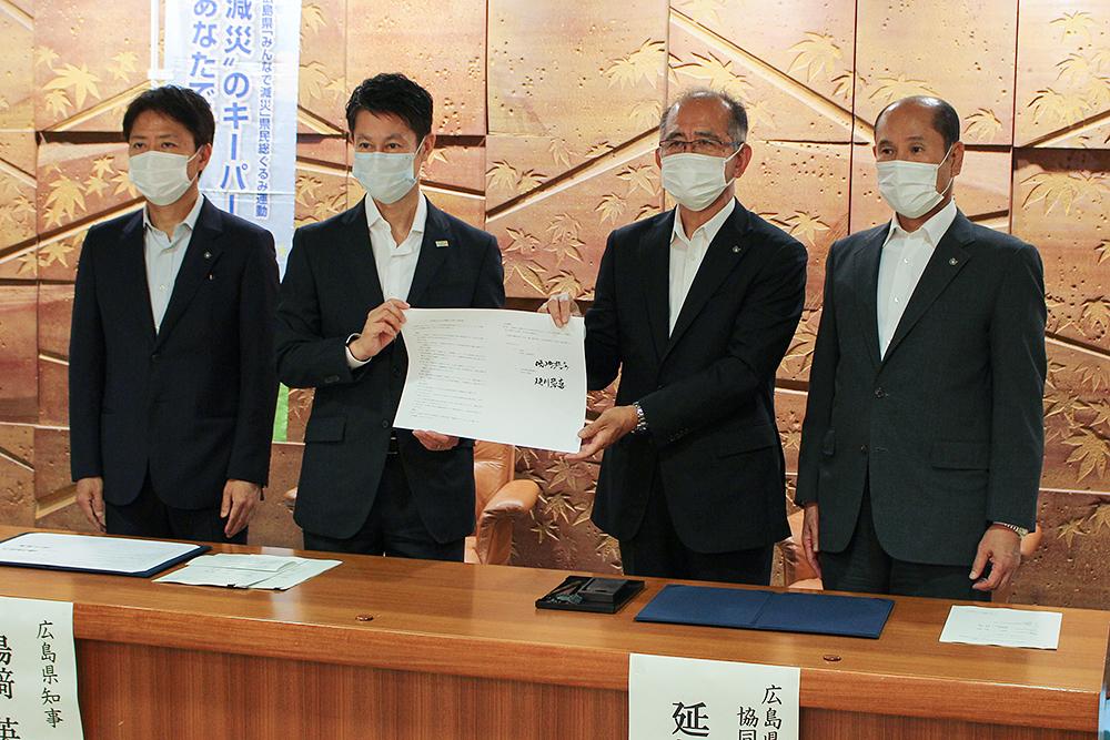 同組合の延川章喜理事長は「県知事と文書による協定を締結することで、災害対策への取り組みについて改めて組合員全員で共通認識を持った。今後も日本一安全・安心な広島県の実現に向けて協力していきたい」としている。