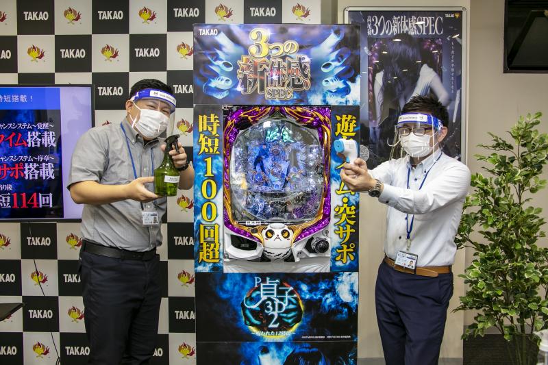 高尾では新解釈基準対応機第1弾の『P貞子3D2 ~呪われた12時間~』の販売を開始。「遊タイム」に加え、「突サポ」「100回転を超える時短機能」の新時短機能すべてを採用した注目の機種だけに、多くのホール関係者が安心してショールームに足を運べる環境づくりに力を注いでいる。
