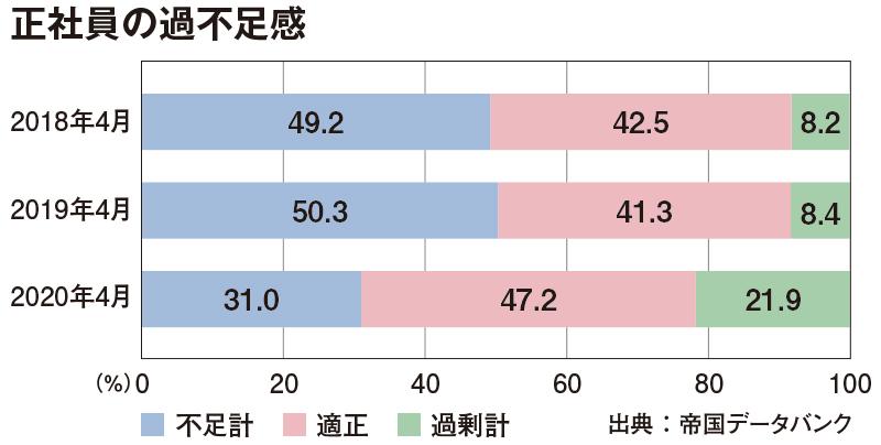 増本所長は「緊急事態宣言が解かれたことで、6月以降は内定出しが進むだろう」と話すが、帝国データバンクが4月に行った動向調査によれば、企業の人手不足感は急激に低下している。正社員が「不足している」と回答した企業の割合は、前年同月比19・3ポイント減少し31・0%に留まった。非正規社員でも同様の傾向がある。