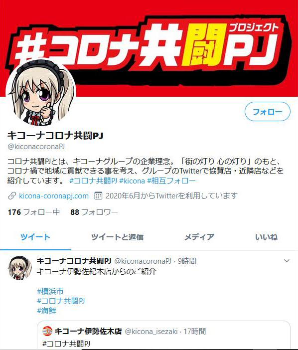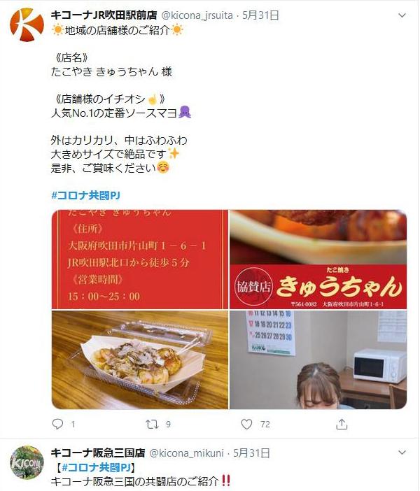 「#コロナ共闘PJ」は、同社が運営する店舗のTwitterアカウントでハッシュタグを付けてツイートし、協賛店・近隣店を紹介するというもの。地域と共にコロナと戦うという意味を込めて、共闘という言葉を選んだ。