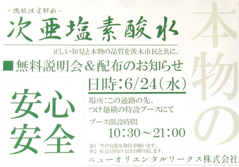 大阪府茨木市のSOCIO西店は、4月21日にOSGコーポレーションの次亜塩素酸水生成装置『ウェルクリン・テ・ネオ』を導入。休業期間中も地域貢献活動として、生成した次亜塩素酸水を店外で無料配布した。
