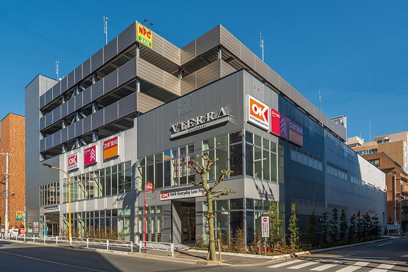 ビルの名称は「江東橋NKビル」。1階にスーパーのオーケーが、2階にダイソーとスギ薬局がテナントで入居。3階から5階は日本パーキングが管理する自走式立体駐車場という構成だ。