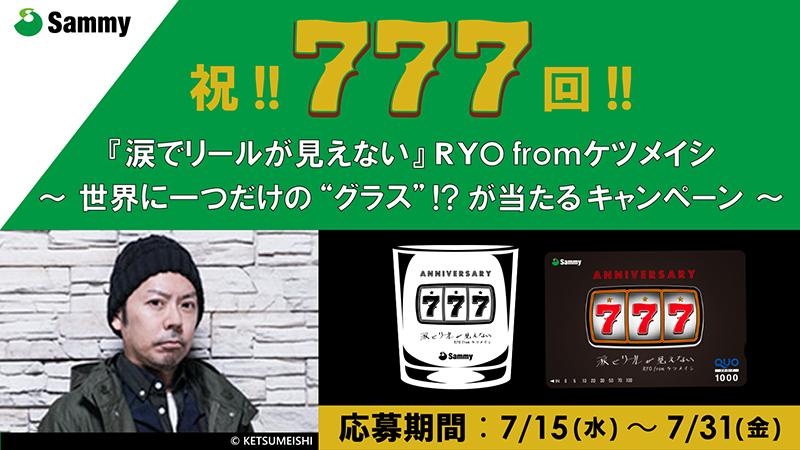 サミーは連載777回を祝して、7月15日(水)からTwitterキャンペーンを実施。RYOさんの直筆サインと特別なひと言メッセージが入った世界に一つだけのオリジナルウイスキーグラスやオリジナルQUOカード(1000円分)が当たるチャンスもある。応募期間は7月31日(金)まで。応募方法は、サミー公式Twitter(@sammy_corp)にて掲載。