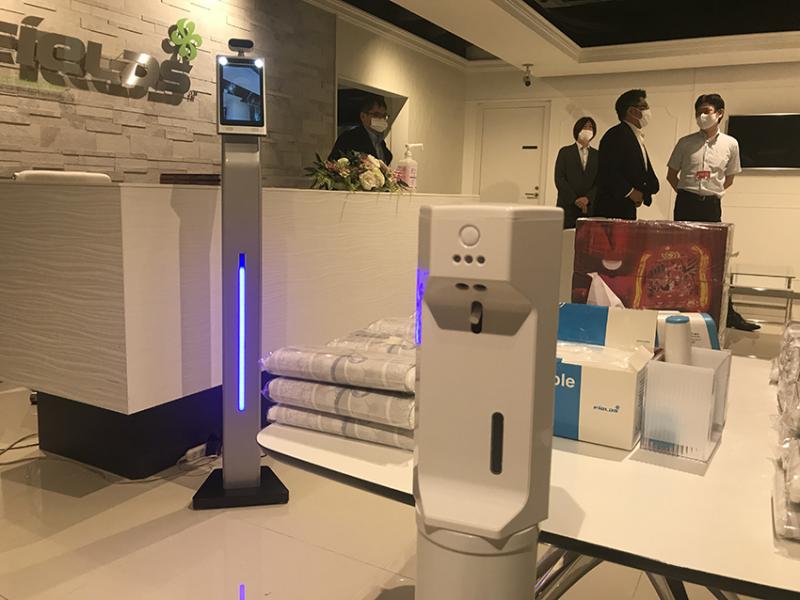 説明会当日は、受付付近に自動噴出タイプの除菌・消毒剤のディスペンサーやマスクをしたまま顔を認知する体温測定装置を設置。サービススタッフの検温・マスクの着用も徹底し、万全の体勢で開催した。
