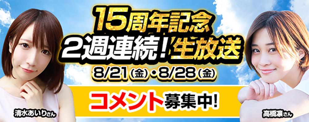 サミーネットワークスが提供する、最新のパチンコ・パチスロがパソコンやスマートフォンで遊べる月額打ち放題のパチ・スロオンラインゲーム『777TOWN』が15周年を迎えた。同社ではこれを記念して8月21日(金)と8月28日(金)にユーザー参加型の生放送イベントを実施する。