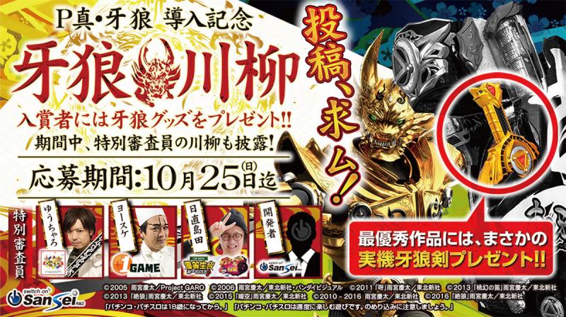 サンセイアールアンドディは、『P真・牙狼』導入記念として「牙狼川柳」キャンペーンを開催する。サンセイアールアンドディ公式Twitter上で、ファンから牙狼にまつわる川柳を募集する。