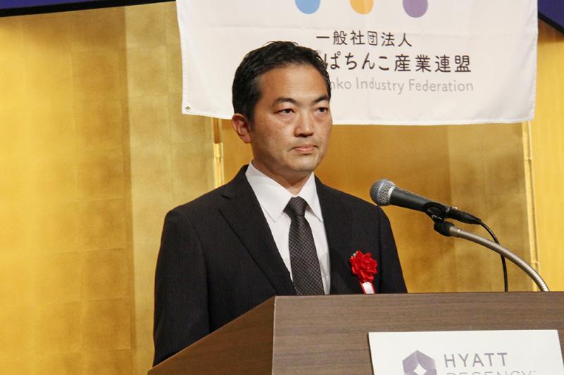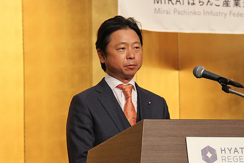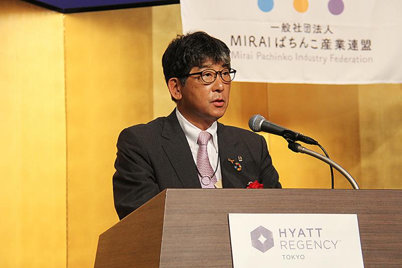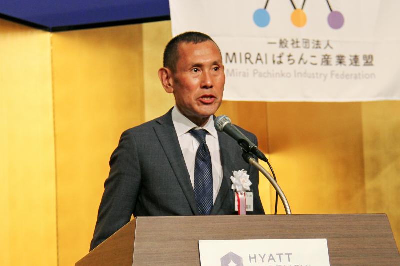 すばらしい2つの団体がひとつになることについては、喜んで得おられる業界の先輩方もたくさんおられます。全日遊連に次いで、2番目に多くのホールが加盟している団体になる。日遊協としてもMIRAIの皆さまとともにこの業界を切り開いていきたい。未来に向かって、未来型パチンコはどういう形がいいのか、10年後、20年後にこの産業をどのようにバトンタッチできるのか。貴連盟の皆様と意見を交えながら産業を作っていきたいと、心より喜んでいます。