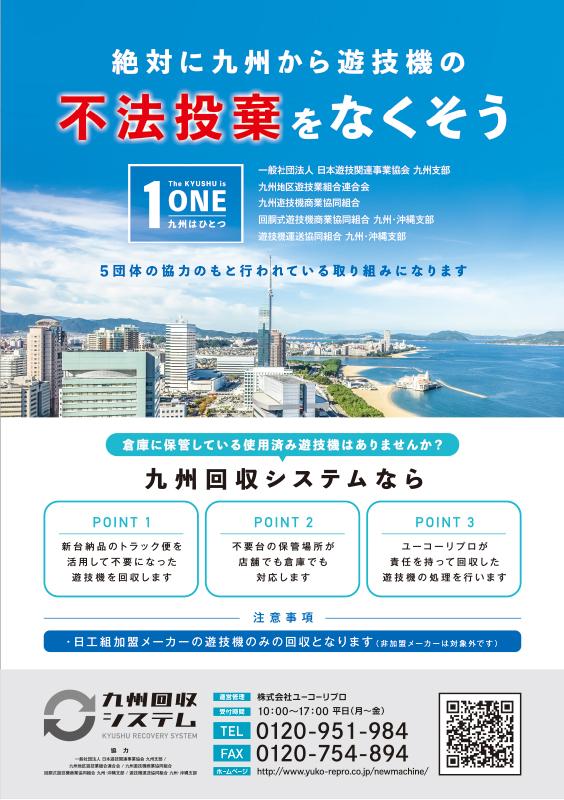 使用期限が過ぎた旧規則機を適正に処理して不法投棄をなくそうという動きが九州で始まった。九州の業界5団体が16日に福岡市内で記者会見を開き、「九州回収システム」などの適正処理プロジェクトを発表。「九州はひとつ」を合言葉に旧規則機の適正処理を推進していく決意を表明した。