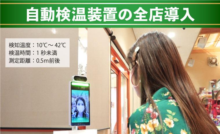 導入した自動検温装置は、入店するお客の体温を非接触で素早く測定。検温時にお客に与えるストレスが少なくすむ。また、オゾン発生器は、密になりやすくマスクを外す必要のある喫煙ルーム内に設置。ウイルスだけでなく、悪臭にも直接作用するため安全かつ快適に喫煙ルームを利用できる。