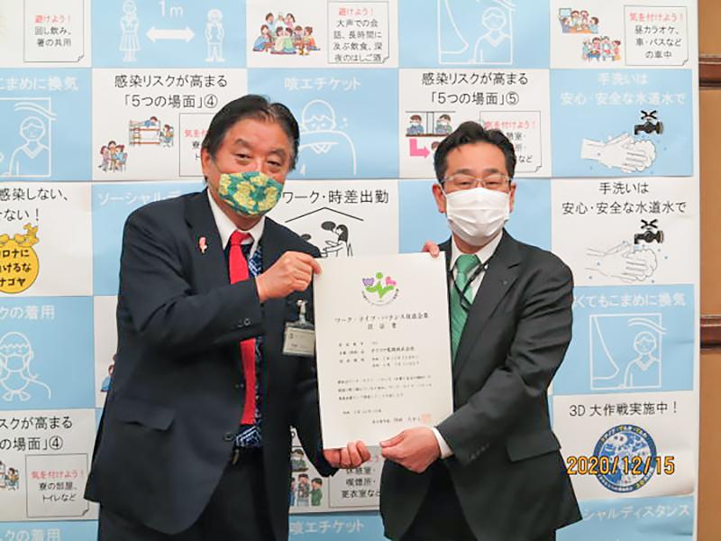 ダイコク電機は12月15日、「名古屋市ワーク・ライフ・バランス推進企業」の認証を取得。栢森雅勝会長が名古屋市の河村たかし市長から認証書を受け取った。