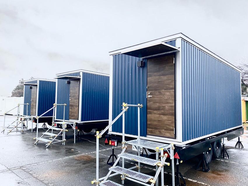 『Trail inn』は、1部屋分をトレーラーで自在に移設ができる工場生産規格型の「動くホテル」。広さ13㎡で、ベッド、ユニットバス・トイレのほかキッチンや洗濯機なども完備。ホテル利用のほか、自然災害やウィルスの脅威に対して、応急住宅やテレワーク用施設など、様々な活用法が期待されている。
