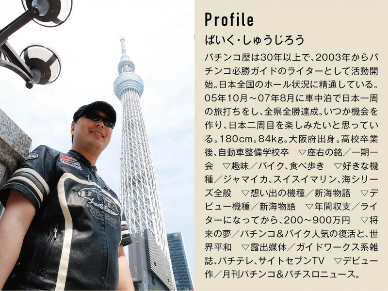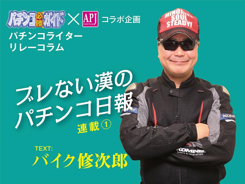 僭越ながら、リレーコラムのトップバッターを務めさせて頂きますバイク修次郎です。私はパチプロ的視点で日々ホール実戦し、勝利を目指して打っています。そこで得た勝率UPに繋がる打ち方やホール選びの方法を雑誌で