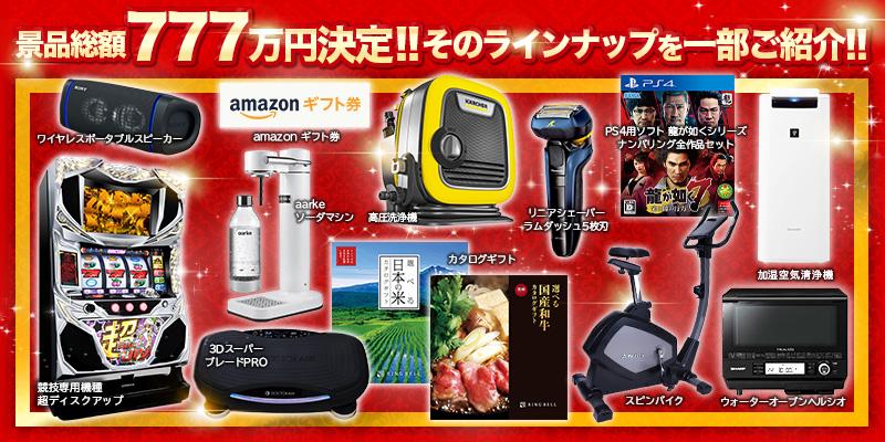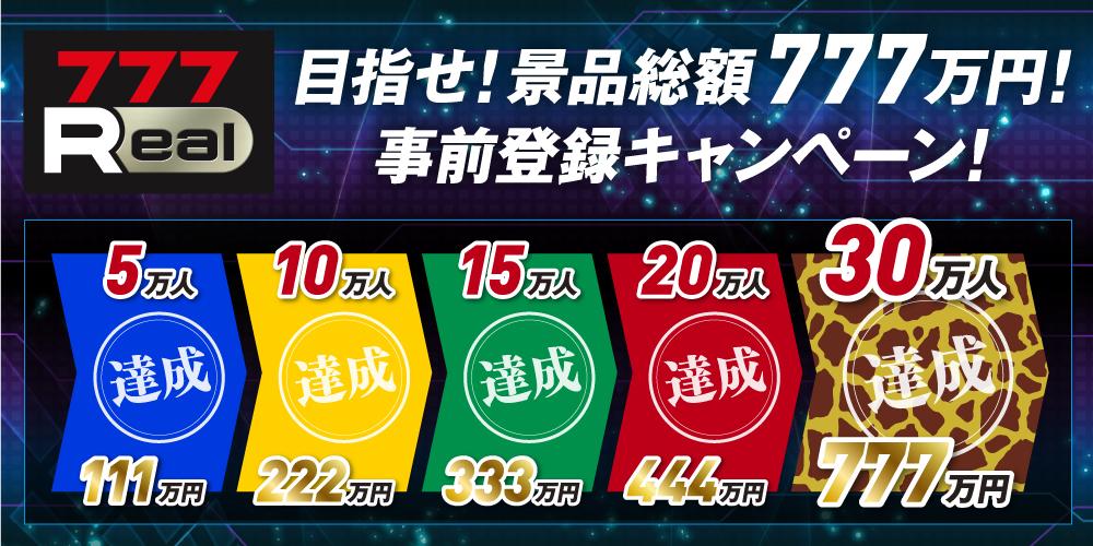サミーネットワークスは12月14日から事前登録を開始している、パチンコ・パチスロアプリの新サービス「777Real(スリーセブンリアル)」のリリース記念キャンペーンを開催。事前登録キャンペーンで目標とする30万人を達成したことを受け、景品総額777万円、当選人数1万人以上のキャンペーンを実施する。