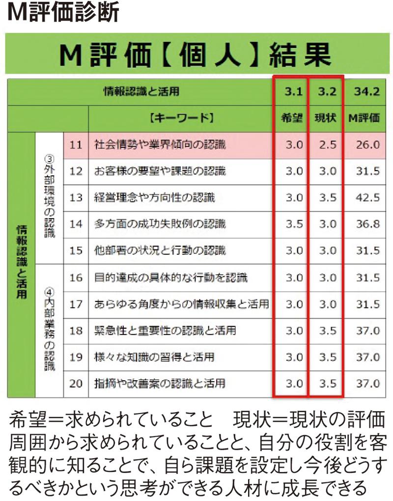 「M評価は360度評価を大幅に細分化させたイメージです。独自の計算式を使って末端のアルバイトの方まで全員を評価します。その結果、自己評価と他者からの評価が乖離している人は、何が足りないのかを考えることにつながります。このM評価の数字を上げていくことが、その人が成長していく過程で非常に大事なプロセスになると考えています」