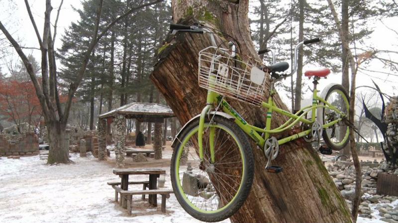 最後に訪れたのはナミソム。冬ソナのタイトル画面に使われているメタセコイヤの並木道や、初デートでふたりがキスをしたベンチ、二人乗りの自転車などがそのまま残されていた。