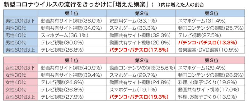 コロナ感染のリスクを警戒し、多くのホールでは高齢客が減少した。だが、この調査では60代以上が「コロナの流行をきっかけに増えた娯楽」としてパチンコ・パチスロを挙げた割合が最も高い。
