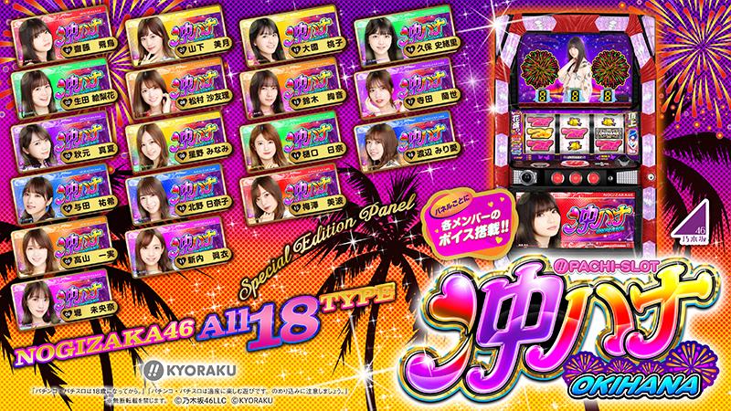KYORAKUと国民的人気アイドルグループ「乃木坂46」との新プロジェクトが、同機を皮切りにスタートする。第1弾となる同機では、特選メンバー18人の中から一人ずつを収めたスペシャルエディションパネルを用意。撮りおろしボイスや人気楽曲である「裸足でSummer」「ダンケシェーン」も堪能できる。