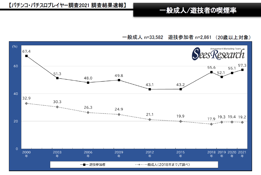 遊技参加者の喫煙率は57.3% ~シーズリサーチ、EBI、APJ共同調査