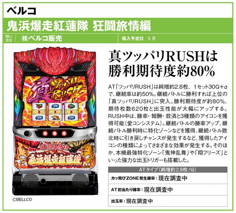 5月24日、ベルコの『鬼浜爆走紅蓮隊 狂闘旅情編』の導入が始まった。同社のキラーコンテンツということもあり、15台(埼玉県の店舗)や8台(23区内の店舗)といった多台数導入も目に付く。