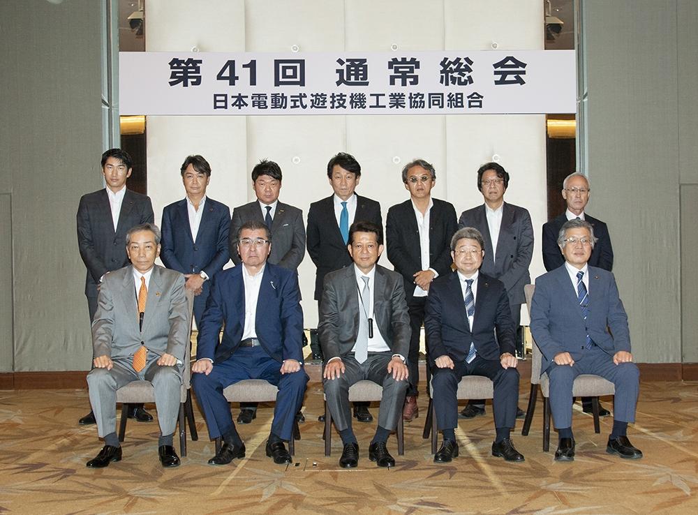 日本電動式遊技機工業協同組合は6月11日、パレスホテル東京で通常総会を開催。任期満了に伴う役員改選で兼次民喜理事長を再任した。