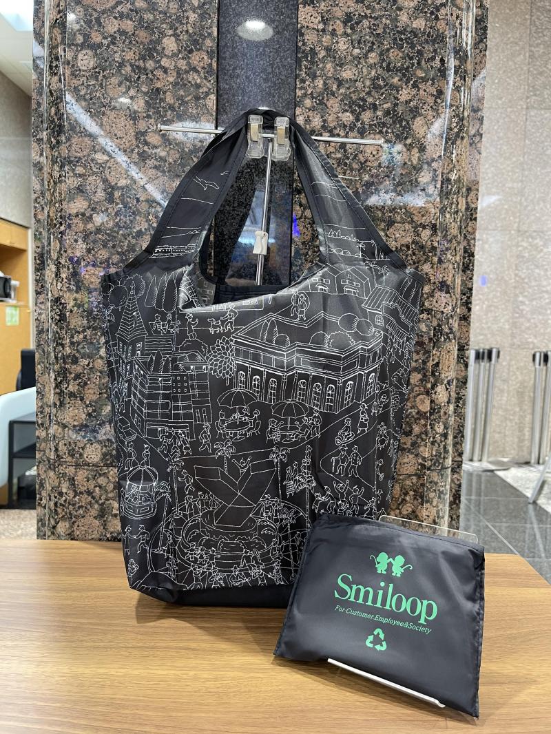 『エコバック』は、制服から抽出した再生ポリエステルで制作。リサイクルに使用した旧制服は計3万20枚で、再生利用によるCO2削減効果は約2912㎏に相当する。加えて、同社従業員がこのエコバックで買い物をして、レジ袋として使用をした場合のCO2の削減効果は、年間約6000㎏相当という試算が出た。