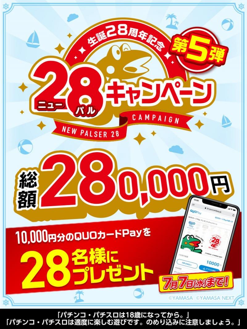 同社の公式Twitterアカウント(山佐PR情報局)をフォローし、キャンペーンツイートをリツイートすることで、1万円分のQUOカードPayが抽選で28人に当たる。キャンペーン期限は7月7日(水)午後11時59分まで。