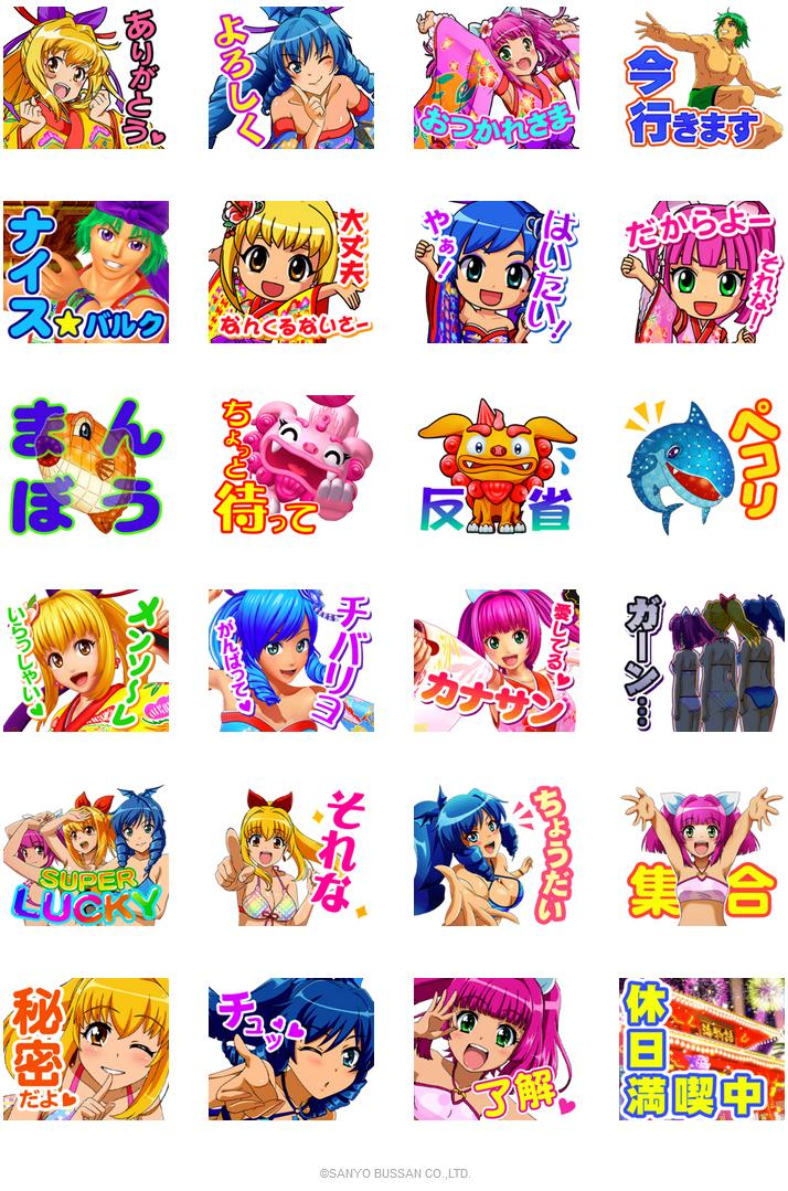 三洋は6月29日、パチンコ新機種「Pスーパー海物語 IN 沖縄5」が7月5日から全国導入されることを記念してLINEスタンプの販売を開始した。