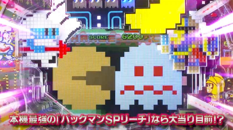 8bitサウンド&ドット演出も懐かしいゲーム画面を融合させたSPリーチがアツく、パックマンSPリーチ「フルーツをとりかえせ!!」ならば大当たりの大チャンスとなる。