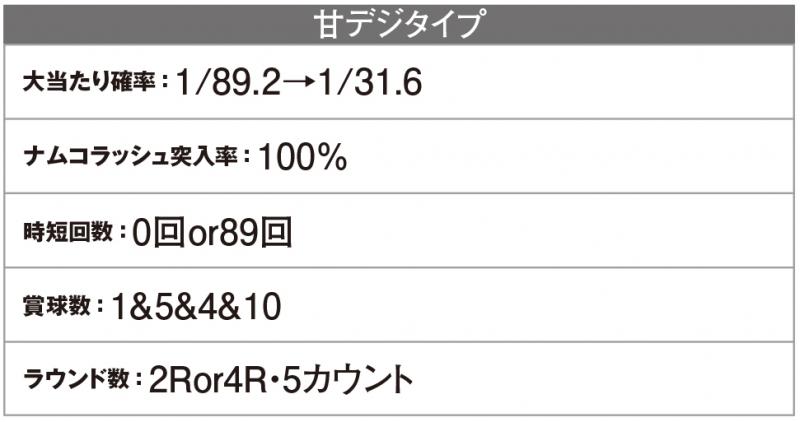 メーシー製で、ライトミドルタイプの『Pナムココレクション』と甘デジタイプの『PAナムココレクション89ver.』が同時にリリースされた。