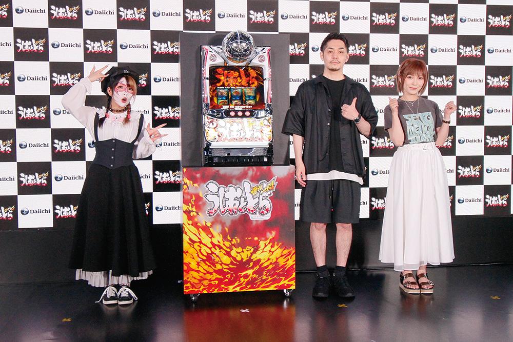 フィールズは7月1日、都内で大一商会製のパチスロ新機種「Sうしおととら 雷槍一閃」の発表展示会を開催した。会場には本機のアンバサダーに就任したタレントの兎味ペロリナさんが登場。機種解説役としてJANBARI.TVのリノさん、DMMぱちタウンの水樹あやさんも登場した。