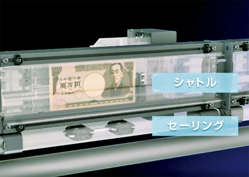 JCMシステムズの新製品『ALTASIA(アルタシア)』は、リニアモーターカーを連想させる新式の紙幣搬送システムだ。エアーを動力とするセーリングが、紙幣を載せたシャトルを磁力で牽引。セーリングとシャトルの可動空間を分離させることで、非密閉空間での紙幣搬送を実現した。