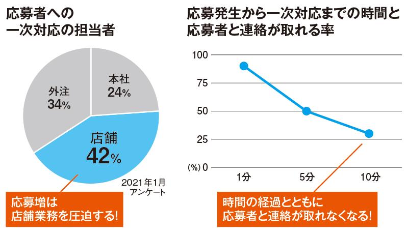 パック・エックスが今年1月に行った調査によると、ホールの42%がアルバイト応募者の一次対応を自店舗で行っている。しかし、ぎりぎりの人員で運営している店舗では、応募者への即対応は難しいはずだ。