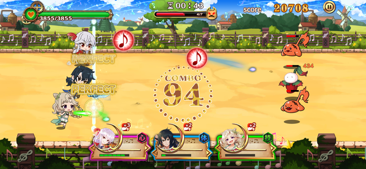 『ナナリズムダッシュ』はリズムに合わせて画面をタップすることで、怪物として現れる「ノイズ」を撃破するRPGゲーム。コンボがつながるほど強力なスキルが発動する。