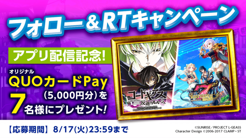 「ナナリズムダッシュ」はアプリ配信を記念したTwitterキャンペーンも実施。公式アカウントを8月17日までにフォロー&リツイートした人の中から抽選で7人にオリジナルデザインのQUOカードPay(5000 円分)をプレゼントする。