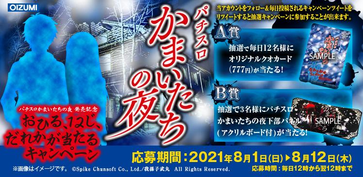 オーイズミは8月12日までの期間、『パチスロかまいたちの夜』の発売を記念した「おひる、12じ、だれかが当たるキャンペーン」を実施している。