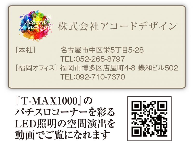 『T‐MAX1000』(鹿児島市)は、旧店舗を全面改装、今年3月にグランドリニューアルオーブンした。LED照明演出を担当したアコードデザインは、パチスロコーナーを旧店舗とはまったく違った雰囲気の遊技空間に変貌させた。