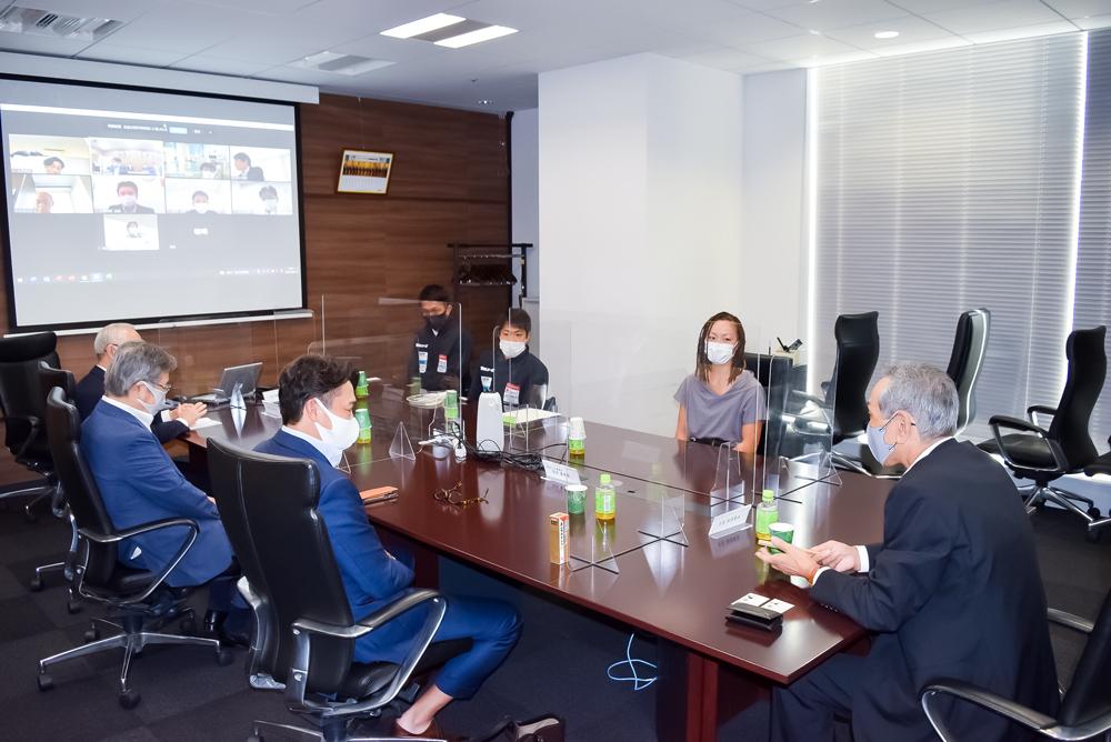 組合を訪れたのは中西麻耶選手(T64女子走幅跳び代表)と生馬知季選手(T54男子100m代表)の2選手と、生馬選手が所属するワールドアスリートクラブの松永仁志監督。コロナ禍で1年延期された大会に備えた苦労やパラリンピックでの結果とともに、大会でのエピソードなどを伝えた。
