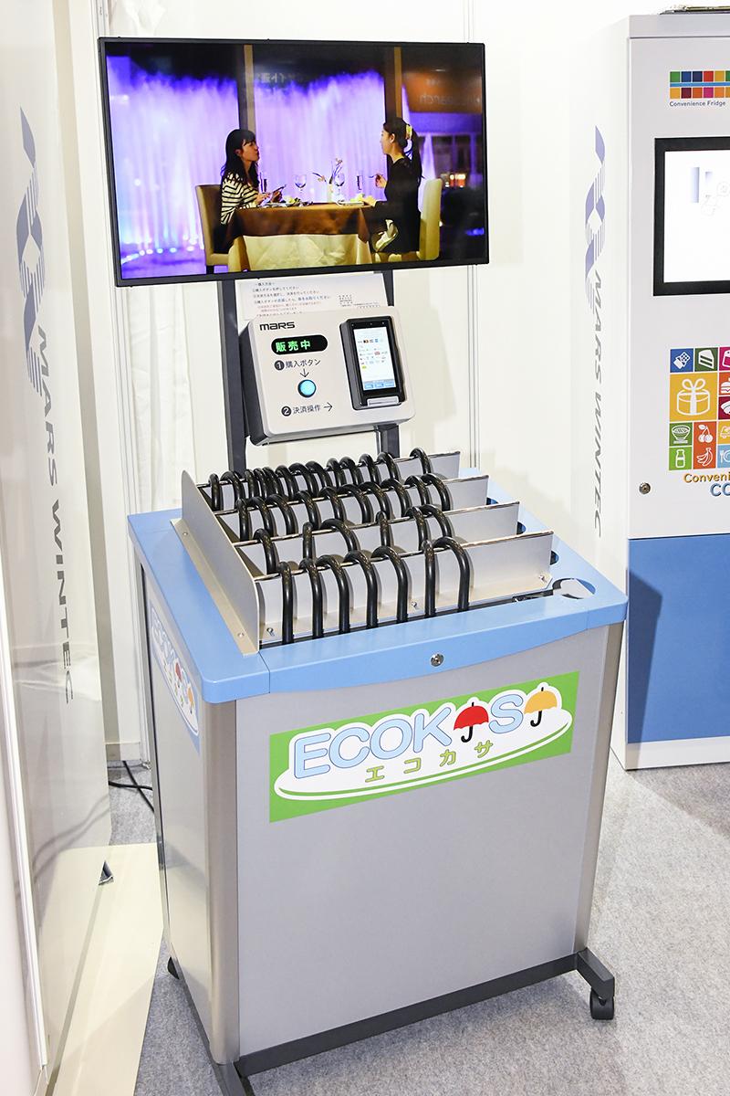 同社ブースではほかにも、新品・中古の傘の販売が可能になるサイネージ付き傘自販機『エコカサ』を展示。ハイスペックの高速紙幣整理機や計数機など多彩な省力化・無人化ソリューションも提案していた。