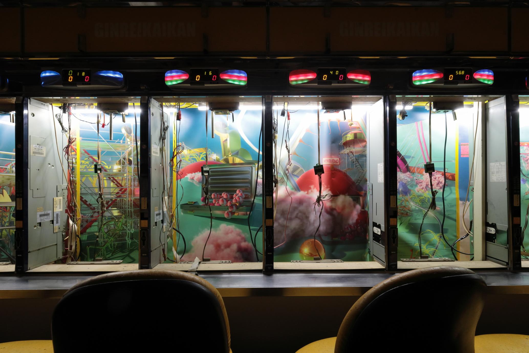 会場には、パチンコの台枠を利用した現代アートや絵画、オブジェなどさまざまな作品が展示された。