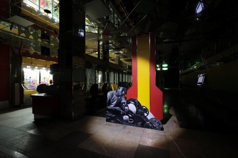「ALTERNATIVE KYOTO もうひとつの京都」in福知山「余の光/Light of My World」と題したこの展示会は、10月8日から11月7日まで開催された。キュレーター(会場のレイアウトや企画等を担当)の堤拓也氏は、「パチンコ店は個性的な建築物であり、その形はもちろん、ガラス・鏡張りなどの華美性がアート展の会場として魅力的だった」と話す。