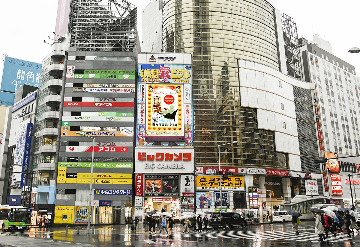 渋谷愛ビジョンは東京・渋谷の宮益坂下にあるビックカメラ渋谷東口店本館の入るビルの壁面にある街頭ビジョン。Web(下記URL)からLive映像が視聴できる。